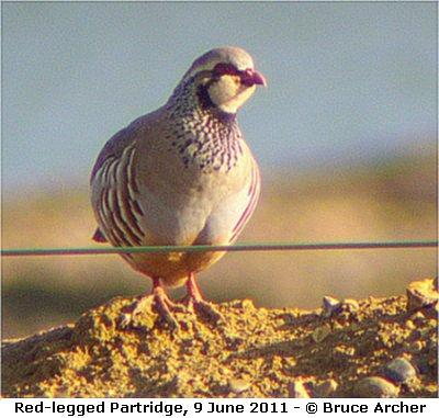 Red Kite over on 26th and regular Kestrel. First Hobby of the year on 22nd. Red-legged Partridge seen on 16th and 19th, probably a pair present.